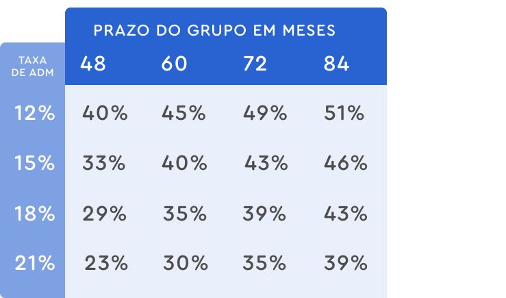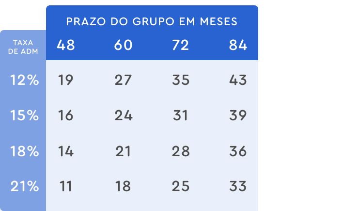 Pensando na média de mercado, é comum encontrar valores de taxa de administração que vão de 10 a 25% do valor do bem. Para comparar com a taxa de juros de um financiamento, tentamos trazer um modelo de comparação de custos ao longo deste artigo.